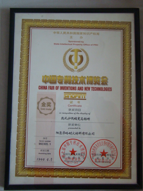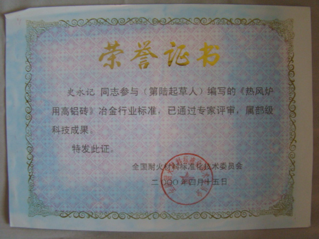 熱風(fēng)爐用低蠕變高鋁磚、高荷軟高鋁磚獲省科技進步二等獎,微膨脹高鋁磚列入火炬計劃項目,炭素焙燒爐用特種高鋁磚已批準(zhǔn)國家專利
